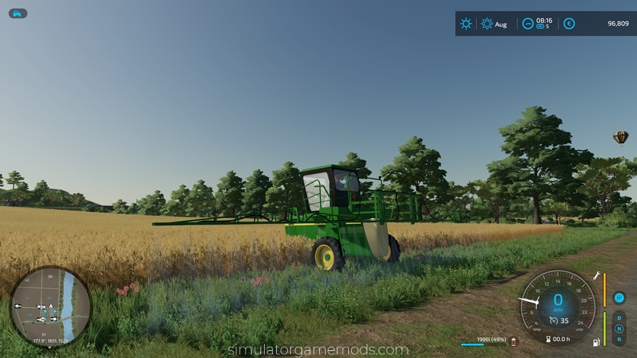 John Deere 6000 Highboy Sprayer has been tested on FS22 (Farming Simulator 22) version 1.14 (final published version.) and works without any issues.