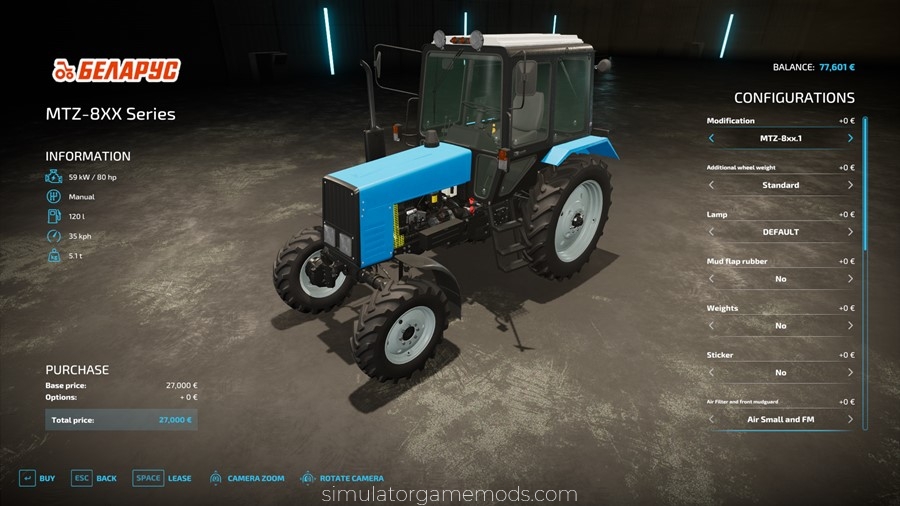 MTZ 8xx Series tractor has been tested on FS22 (Farming Simulator 22) version 1.14 (final published version.) and works without any issues.